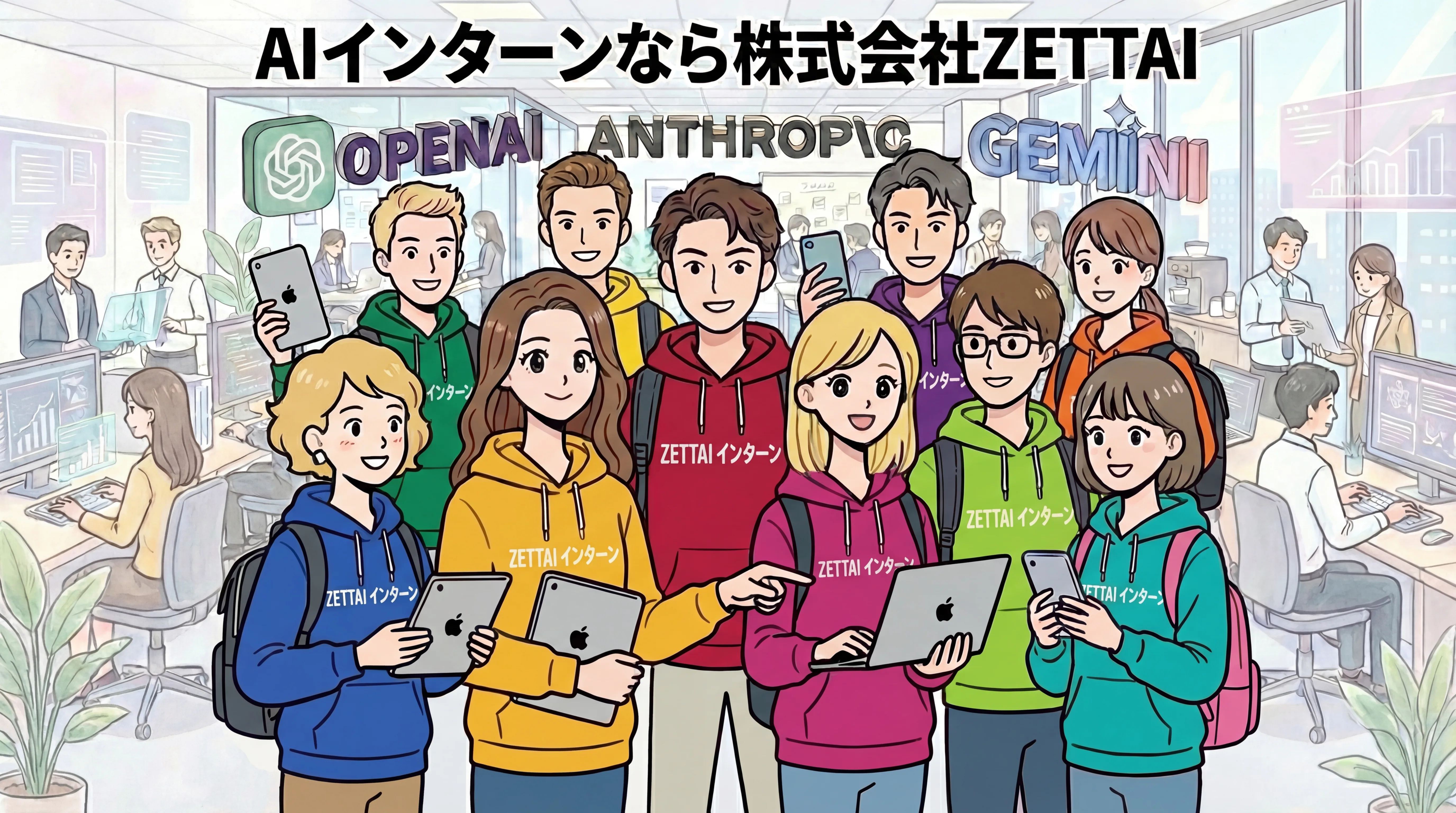 池袋駅徒歩5分。未経験からAIコンサルタントへ。株式会社ZETTAIが運営するAI人材育成プログラム。AI長期インターンや正社員採用を実施中。立教大学・学習院大学など近隣の学生も多数参加。学生バイト感覚で週2日から始められるAIインターンシップです。